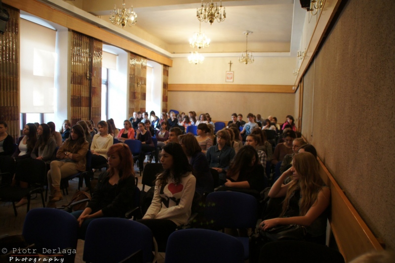 Spotkanie uczniów I LO z przewodniczącym jury festiwalu "Talia". Tarnów