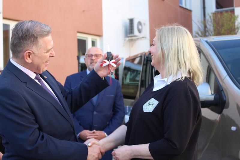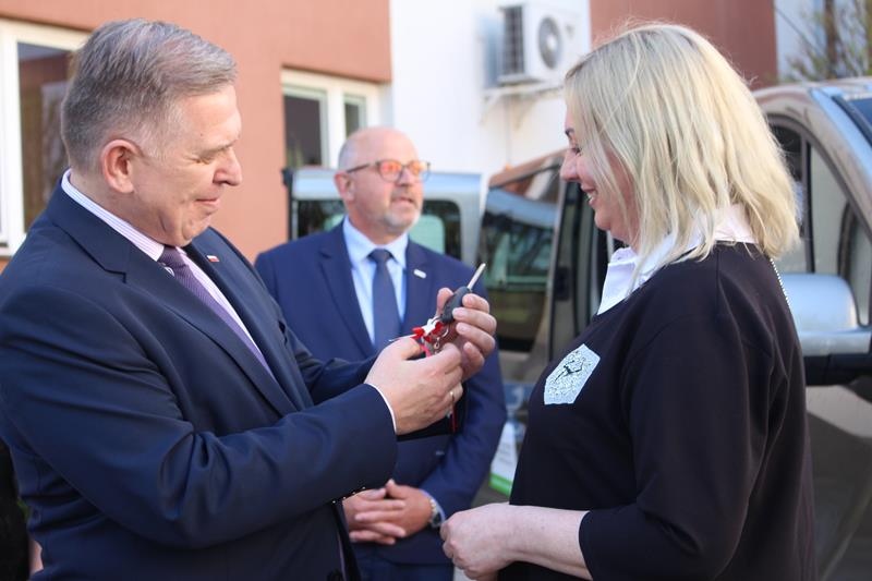Przekazanie nowych samochodów dla placówek pomocy społecznej. Nowodworze