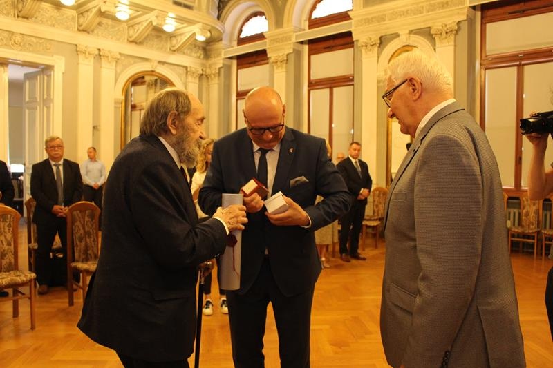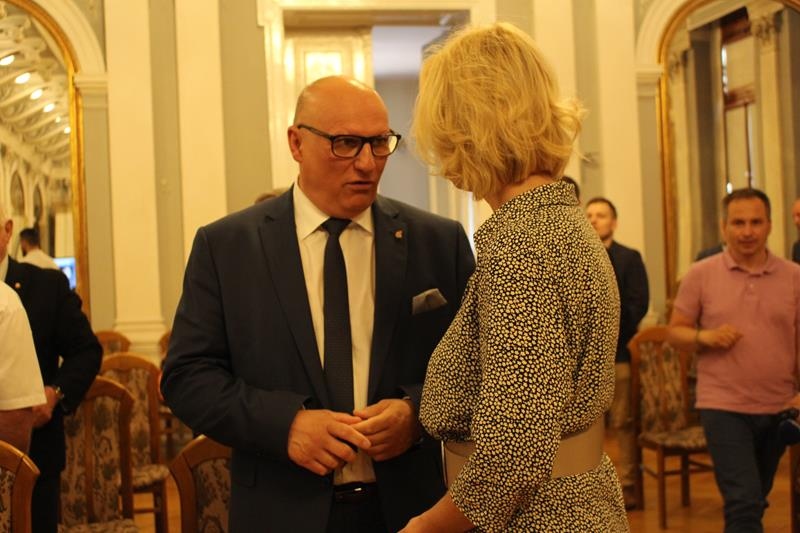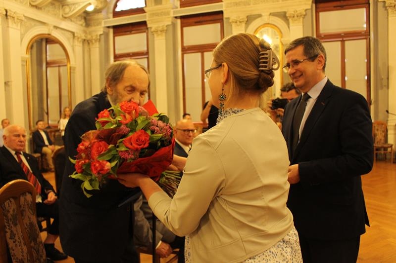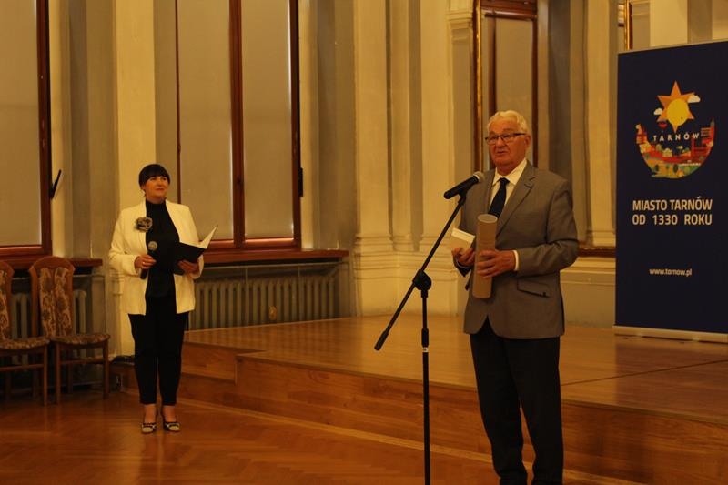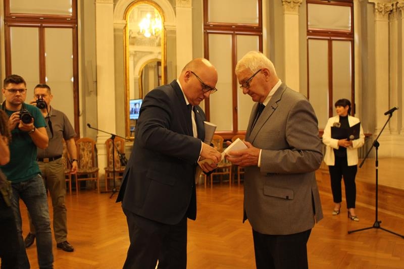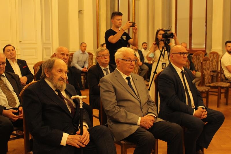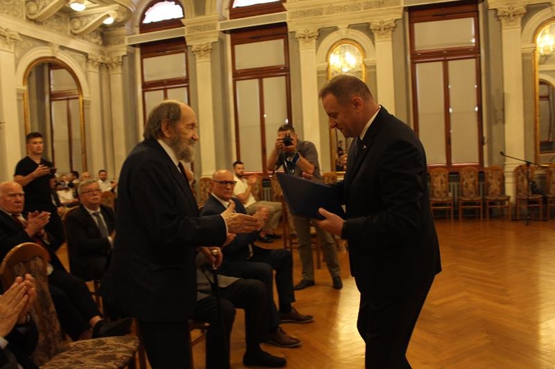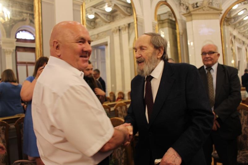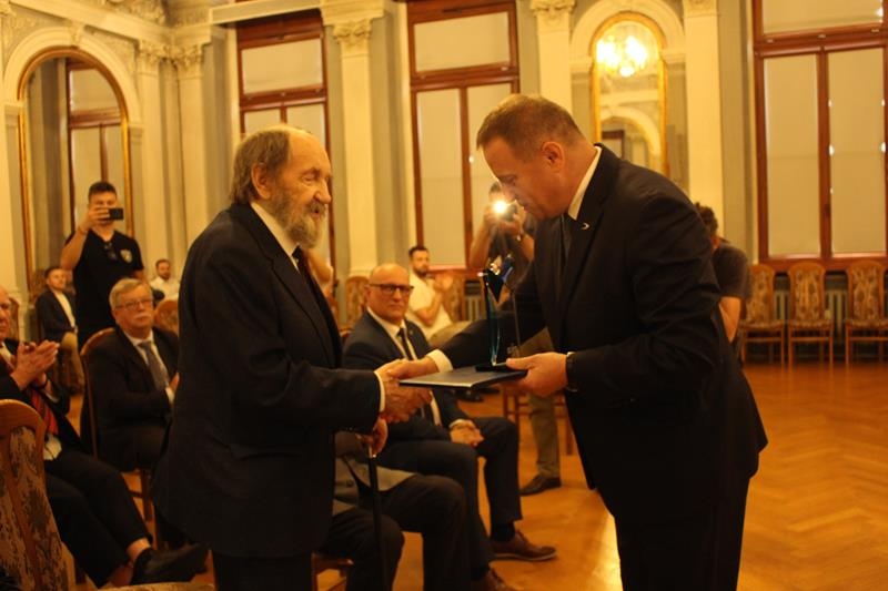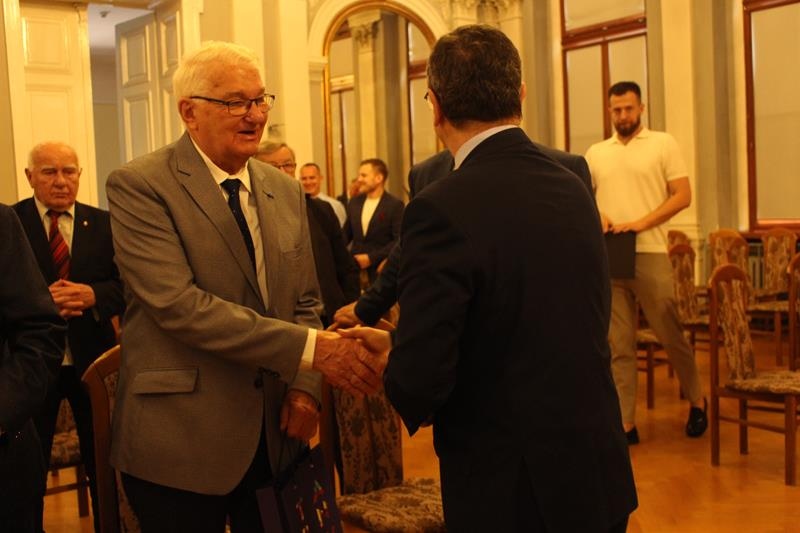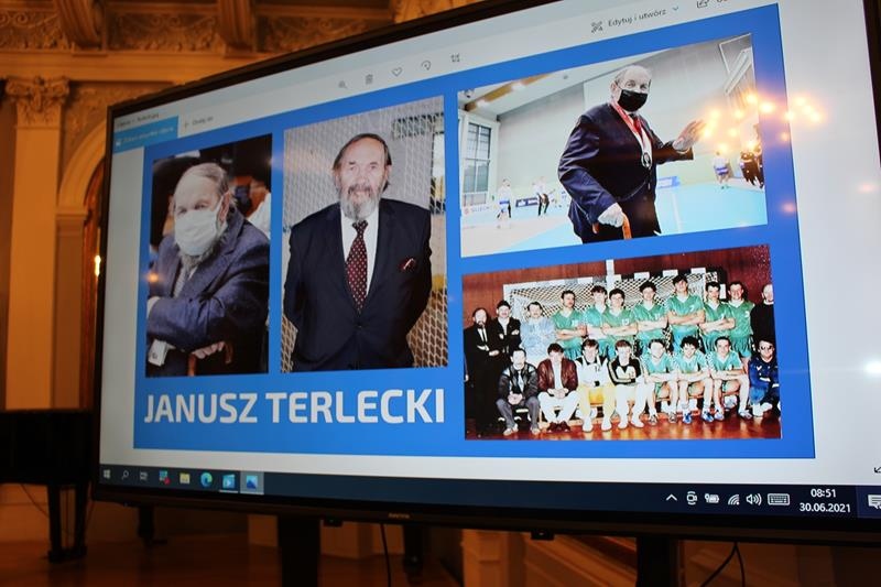 Janusz Terlecki uhonorowany Diamentową Odznaką z Wieńcem „Za Zasługi dla Piłki Ręcznej”. Sala Lustrzana w Tarnowie