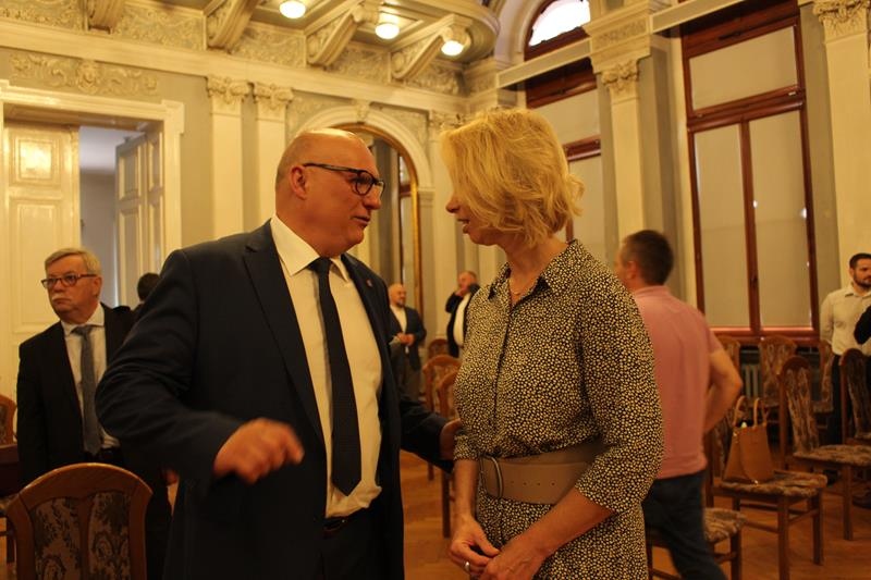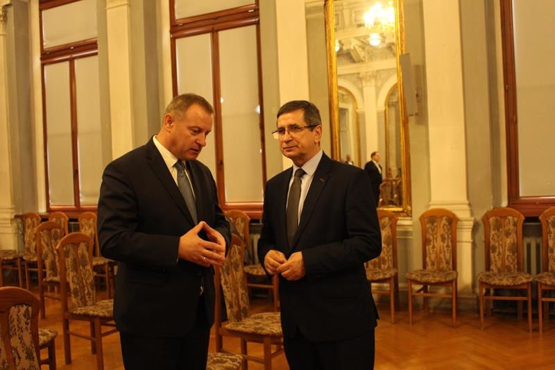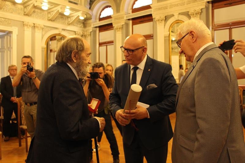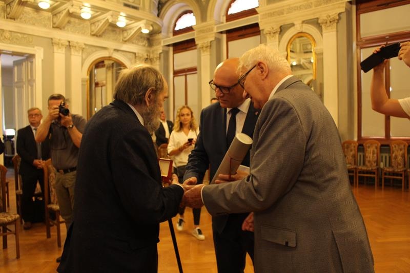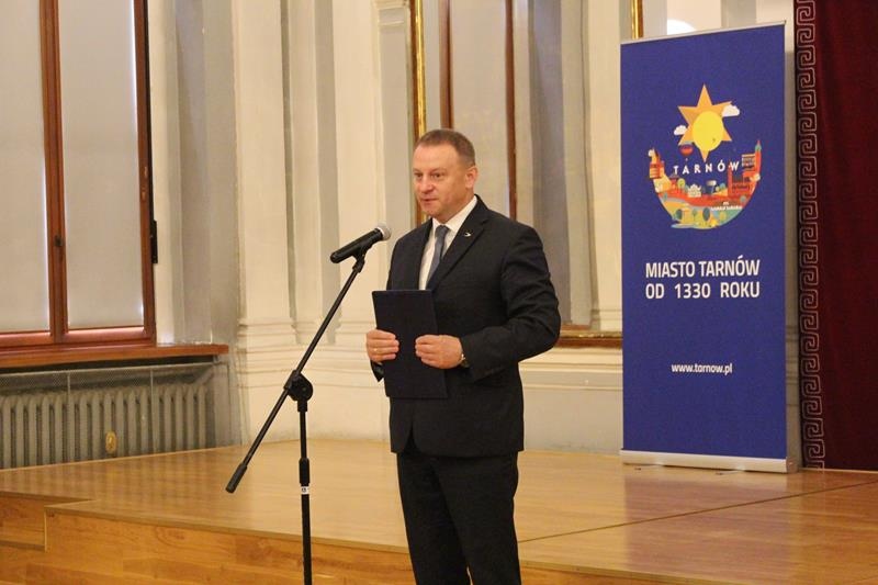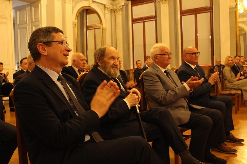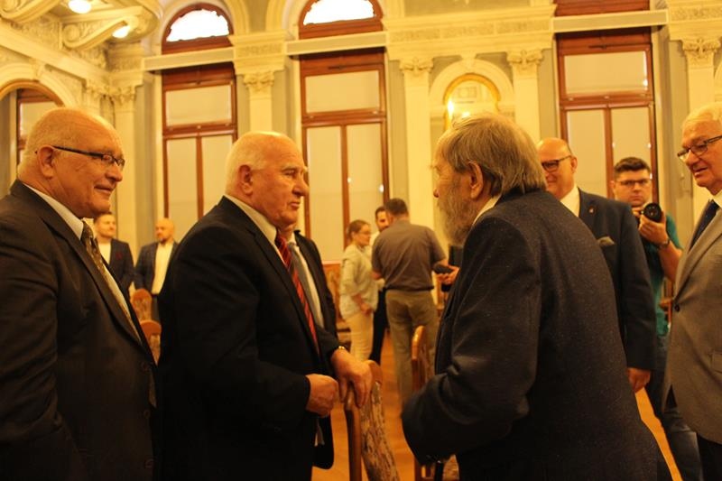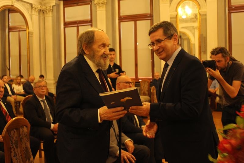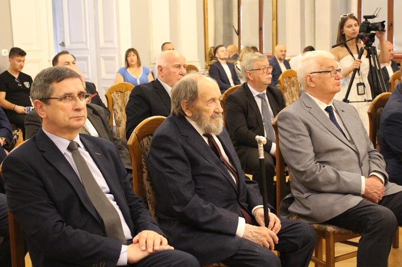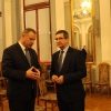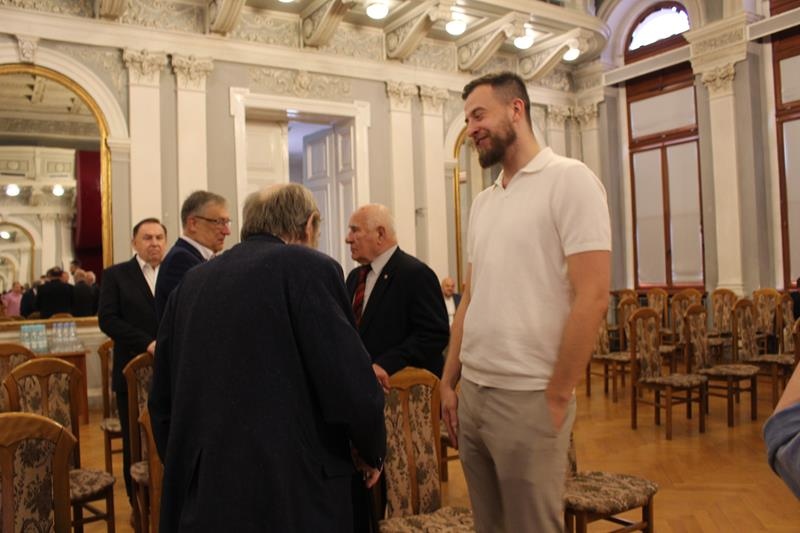 Janusz Terlecki uhonorowany Diamentową Odznaką z Wieńcem „Za Zasługi dla Piłki Ręcznej”. Sala Lustrzana w Tarnowie