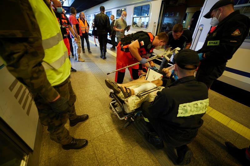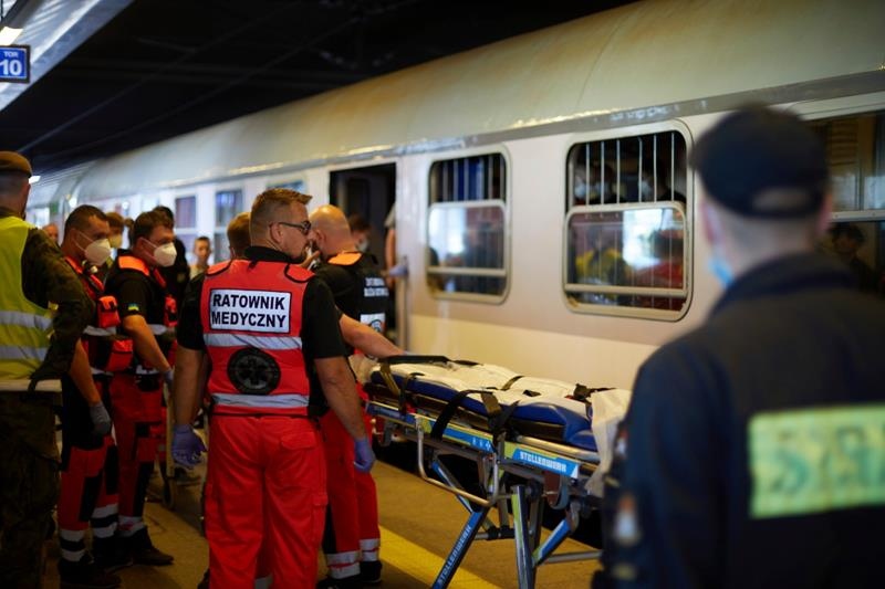 Ranni ukraińscy żołnierze w Krakowie. Fot. Małopolski Urząd Wojewódzki w Krakowie.