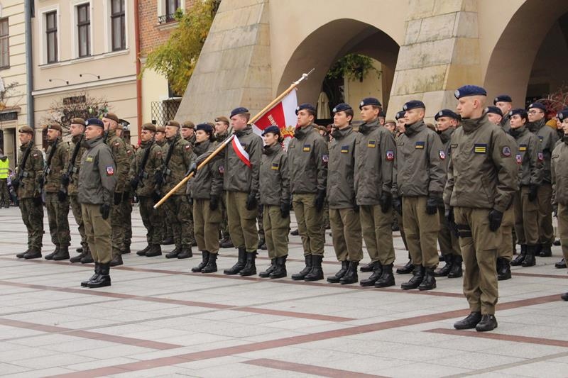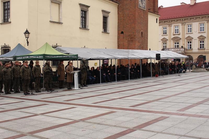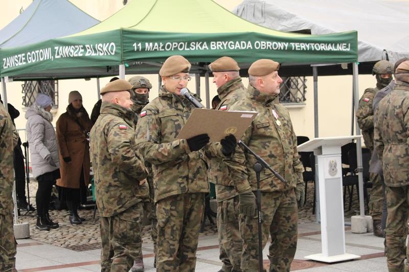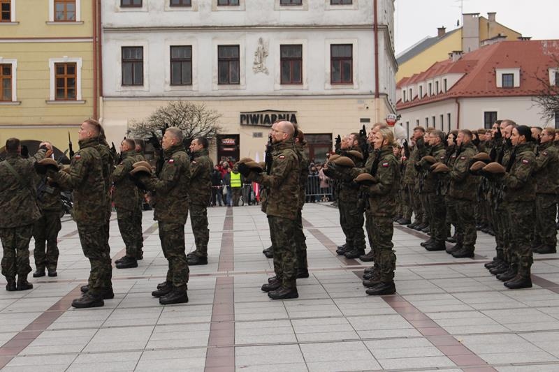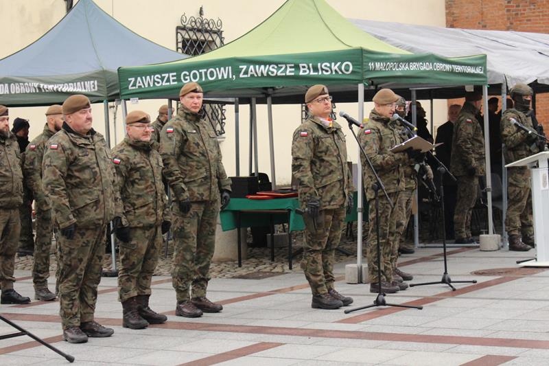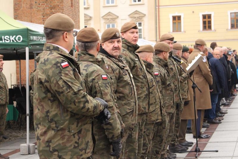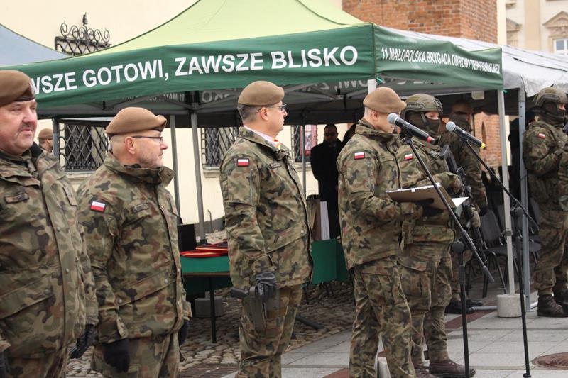 Rynek w Tarnowie - przysięga wojskowa żołnierzy 11 Małopolskiej Brygady Obrony Terytorialnej.