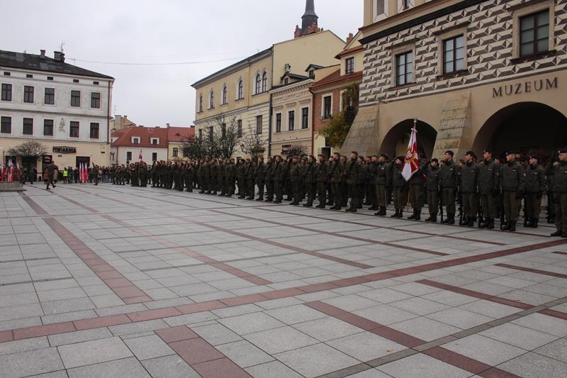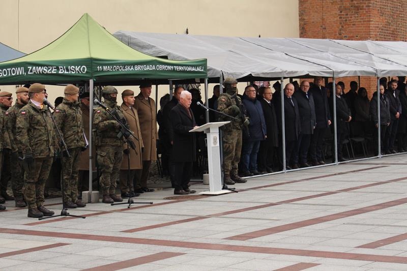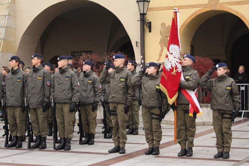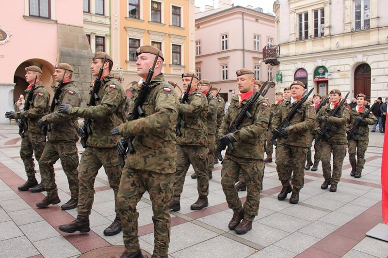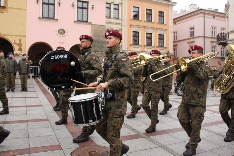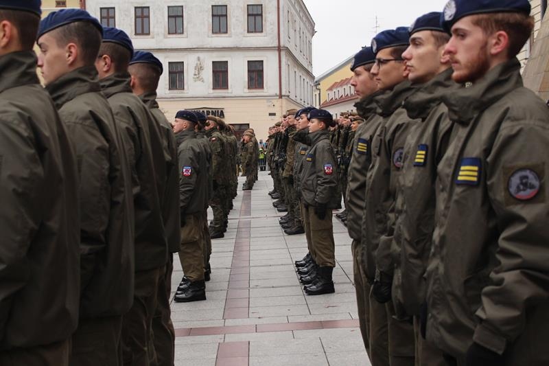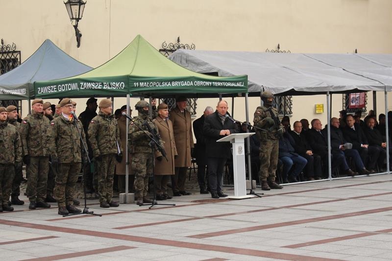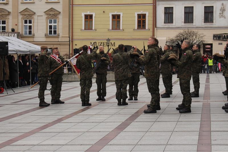 Rynek w Tarnowie - przysięga wojskowa żołnierzy 11 Małopolskiej Brygady Obrony Terytorialnej.