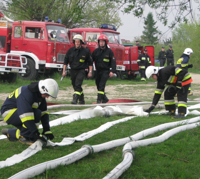 Ćwiczenia straży pożarnej z terenu powiatu tarnowskiego. Komorów.