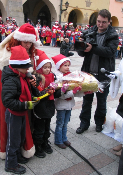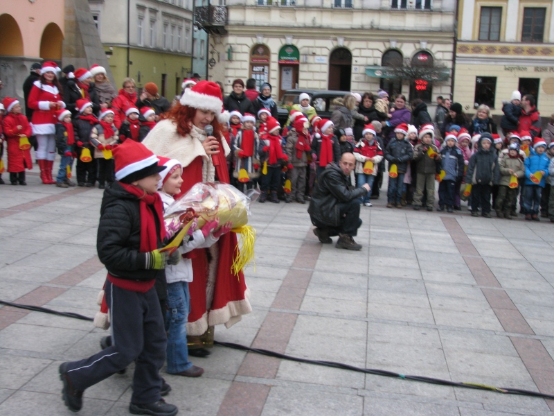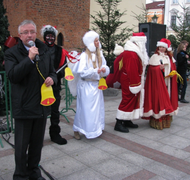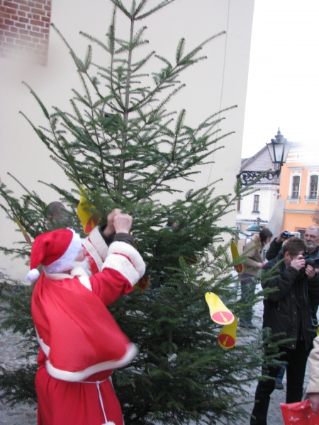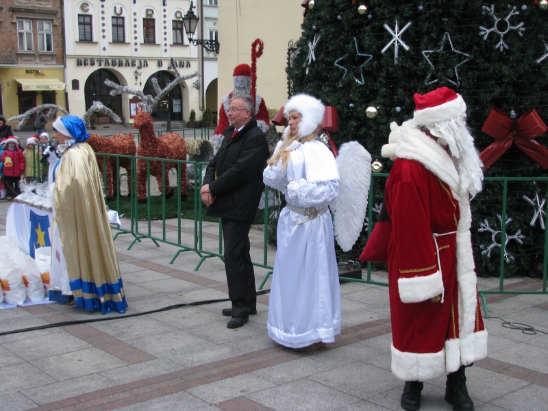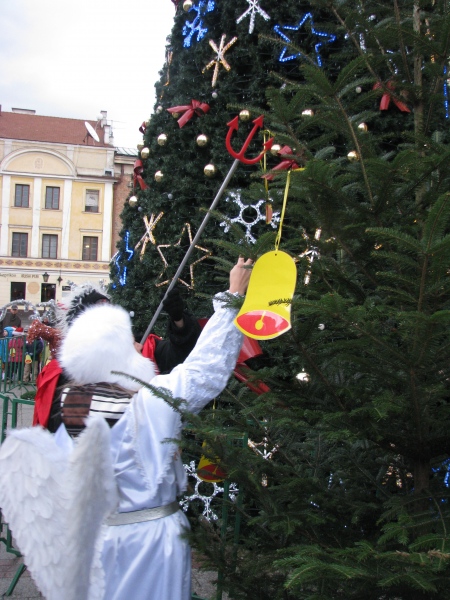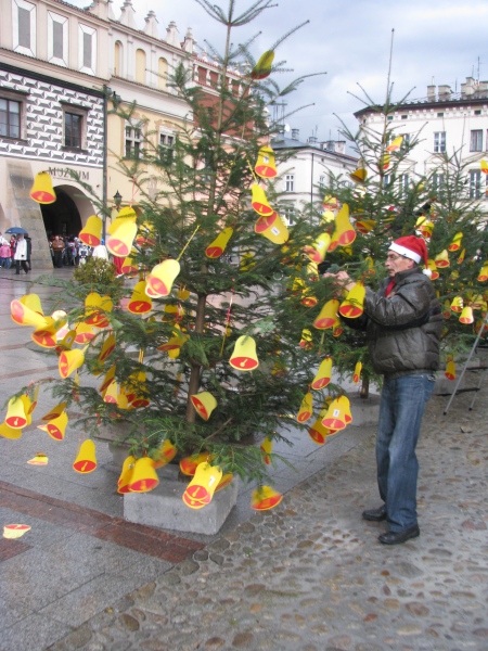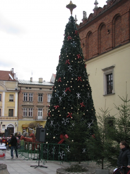 Ubieranie choinki na Rynku w Tarnowie