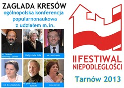 W ramach tegorocznej edycji Festiwalu Niepodległości 28 października o godzinie 10.00 w Państwowej Wyższej Szkole Zawodowej w Tarnowie odbędzie się sesja popularno – naukowa „Zagłada Kresów”. To kontynuacja projektu sprzed pięciu lat, zorganizowanego przez trzy tarnowskie stowarzyszenia we współpracy z tarnowskim starostwem, zatytułowanego „Zagłada. Sesja popularnonaukowa w 5 aktach z antraktami".