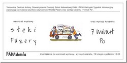 Tarnowskie Centrum Kultury, Stowarzyszenie Promocji Sztuki Kabaretowej PAKA oraz Galicyjski Tygodnik Informacyjny TEMI zapraszają na wystawę rysunków satyrycznych Witolda Pazery – „Steki Pazery”.