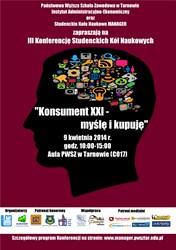 Studenckie Koło Naukowe MANAGER działające przy Zakładzie Ekonomii, Państwowej Wyższej Szkoły Zawodowej w Tarnowie, organizuje studencką konferencję naukową „Konsument XXI – myślę i kupuję”. Konferencja została objęta honorowym patronatem Marszałka Województwa Małopolskiego oraz Prezydenta Miasta Tarnowa.