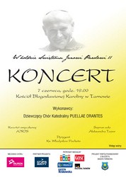 Na koncert w hołdzie świętemu Janowi Pawłowi II zaprasza 7 czerwca o godzinie 19.00 Dziewczęcy Chór Katedralny „Puellae Orantes”. Koncert odbędzie się w kościele pod wezwaniem błogosławionej Karoliny w Tarnowie.