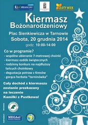 Na miejscu będzie także kiermasz ozdób świątecznych, wykonanych z banerów wyborczych przez dzieci z pracowni plastycznych Pałacu Młodzieży oraz seniorów z Klubu „Zloty Wiek". Cały dochód z tego kiermaszu zostanie przekazany na leczenie ciężko chorej Kamili z Pustkowa.