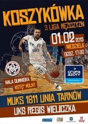 Koszykarze MUKS 1811 Unii Tarnów rozegrają 1 lutego kolejny mecz w rozgrywkach III ligi. Tarnowianie podejmować będą najsłabszy zespół ligowy – UKS Regis Wieliczka. W listopadzie w Wieliczce MUKS wygrał 78:59.