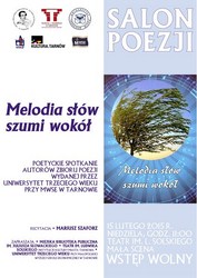 Miejska Biblioteka Publiczna i Teatr im. L. Solskiego zapraszają 15 lutego o godzinie 11.00 na kolejne spotkanie w Salonie Poezji. Rok 2015 organizatorzy otwierają zaproszeniem na poetyckie spotkanie autorów zbioru poezji „Melodia słów szumi wokół”, wydanej przez Uniwersytet Trzeciego Wieku przy Małopolskiej Wyższej Szkole Ekonomicznej w Tarnowie. Wiersze w interpretacji Mariusza Szaforza, widzowie usłyszą tradycyjnie na małej scenie tarnowskiego teatru.
