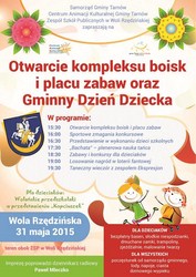 W niedzielę, 31 maja o godzinie 15.30, samorząd gminy Tarnów oraz wolański Zespół Szkół Publicznych zapraszają do Woli Rzędzińskiej na uroczyste otwarcie kompleksu boisk i placu zabaw połączone z obchodami Dnia Dziecka.