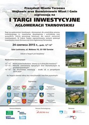Targi inwestycyjne to wspólne przedsięwzięcie Gminy Miasta Tarnowa i ośmiu sąsiednich gmin. Impreza odbędzie się w Tarnowie 24 czerwca. Targom towarzyszyć będzie konferencja, której uczestnicy dyskutować będą m.in. na temat prawa budowlanego, pozyskiwania funduszy oraz tworzenia Specjalnych Stref Ekonomicznych.