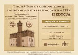 28 września rozpocznie się druga edycja Tygodnia Turystyki Młodzieżowej. W trakcie bezpłatnych wycieczek po Tarnowie przewodnicy PTTK będą opowiadali o najciekawszych miejscach w mieście. Zapisy do udziału w Tygodniu prowadzone będą do 21 września w biurze tarnowskiego oddziału PTTK przy ul. Żydowskiej 20.
