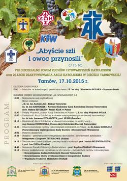 Podczas uroczystości w dniu 17 października Akcja Katolicka Diecezji Tarnowskiej świętować będzie dwudziestolecie istnienia. Jednym z punktów programu obchodów będzie także VIII Forum Ruchów i Stowarzyszeń pod hasłem „Abyście szli i owoc przynosili”.