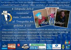 W hali widowiskowo-sportowej „Jaskółka” zostanie rozegrany I Charytatywny Turniej Piłki Nożnej „O Czarną Jaskółkę”. Zawody z udziałem ośmiu drużyn rozpoczną się 8 listopada o godzinie 8.15. Celem turnieju jest finansowe i materialne wsparcie dziesięcioletniego Pawła Kozioła. Wstęp wolny.