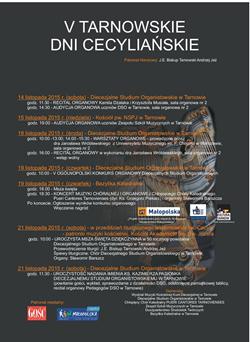 Od 14 do 21 listopada trwać będą Tarnowskie Dni Cecyliańskie. Okazją do ich zorganizowania, już po raz piąty, jest przypadające 22 listopada liturgiczne wspomnienie św. Cecylii, patronki muzyki kościelnej.