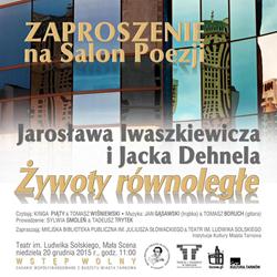 Salon Poezji zatytułowany „Żywoty równoległe” odbędzie się 20 grudnia o godzinie 11.00 na małej scenie tarnowskiego teatru. Teksty czytać będą Kinga Piąty i Tomasz Wiśniewski, a oprawę muzyczna zapewnią: Tomasz Boruch (gitara) i Jan Gąsawski (trąbka). Wstęp wolny.