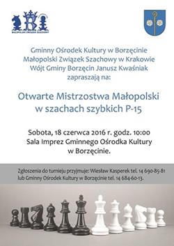 Otwarte Indywidualne Mistrzostwa Małopolski w Szachach Szybkich P-15 to kolejny już turniej szachowy organizowany w Borzęcinie.