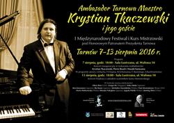 Już w najbliższą niedzielę, 7 sierpnia, rozpocznie się I Międzynarodowy Festiwal i Kurs Mistrzowski Ambasador Tarnowa, Maestro Krystian Tkaczewski i jego goście. Imprezę zainauguruje koncert o godzinie 18.00 w Sali Lustrzanej przy ulicy Wałowej. Na scenie, oprócz Krystiana Tkaczewskiego, zaprezentują się Masahi Katayama z Japonii oraz Pierre Reach z Francji.