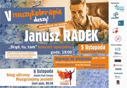 Na piątą edycję „Muzykoterpii duszy” zaprasza Centrum Zdrowia Tuchów we współpracy z Fundacją Zdrowym Być i Domem Kultury w Wierzchosławicach. Jednym z punktów programu imprezy będzie recital Janusza Radka w Centrum Sztuki Mościcie 5 listopada o godzinie 19.00. Mamy dla internautów bezpłatne zaproszenia na recital – zapraszamy do biletomanii.