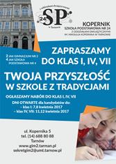 W wyniku reformy oświaty, z mapy Tarnowa zaczynają znikać szkoły gimnazjalne. Od września przy ulicy Kopernika nie będzie już gimnazjum, ale szkoła podstawowa nr 24 z oddziałami dwujęzycznymi. Szkoła ogłasza nabór i zaprasza na Dni Otwarte.