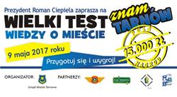 Po raz drugi odbędzie się w Tarnowie konkurs „Znam Tarnów – wielki test wiedzy o mieście”. Uczestnicy spotkają się 9 maja o godzinie 17.00 w Sali Lustrzanej. Pula nagród wynosi 15 tysięcy złotych. Zgłoszenia do udziału w konkursie przyjmowane są do 26 kwietnia.