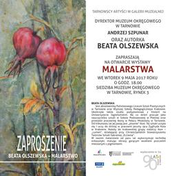 W ramach cyklu Tarnowscy Artyści w Galerii Muzealnej tarnowskie muzeum zaprasza na wystawę prac malarskich Beaty Olszewskiej. Wernisaż odbędzie się 9 maja o godzinie 18.00. Prace będzie można oglądać w siedzibie muzeum w Rynku 3 do 28 maja.