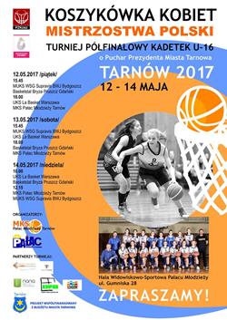 Od 12 do 14 maja w Tarnowie, w hali widowiskowo - sportowej Pałacu Młodzieży przy ul. Gumniskiej 28, rozegrany zostanie półfinałowy turniej Mistrzostw Polski U-16 w koszykówce kobiet o Puchar Prezydenta Miasta Tarnowa.