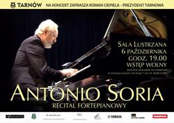 W ramach Międzynarodowego Festiwalu Pianistycznego Królewskiego Miasta Krakowa w Sali Lustrzanej w Tarnowie odbędzie się w dniu 6 października o godzinie 19.00 recital hiszpańskiego pianisty Antonio Sorii.