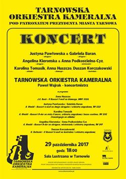 Na kolejny koncert zaprasza 29 października o godzinie 18.00 Tarnowska Orkiestra Kameralna. Będzie to koncert z udziałem tarnowskich muzyków i solistów.