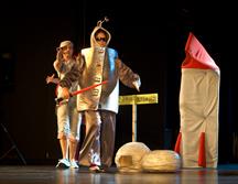 „Babroszki lecą w kosmos" to przedstawienie interaktywne, w którym dzieci biorą czynny udział. Budują wspólnie z aktorami rakietę, uczą się tańczyć kosmiczny taniec „bliblibli” a także pokonują złe siły dzięki swojej spostrzegawczości i pomysłowości.