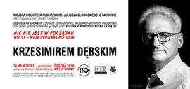 Miejska Bibliotek Publiczna im. Juliusza Słowackiego w Tarnowie zaprasza na spotkanie Krzesimirem Dębskim. Podczas spotkania, które odbędzie się 14 maja w Centrum Sztuki Mościce, kompozytor opowiadał będzie o swojej książce „Nic nie jest w porządku. Wołyń – moja rodzinna historia”.