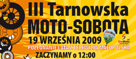19 września w samo południe rozpocznie się na placu przy Centrum Handlowym Echo przy ulicy Błonie piknik motoryzacyjny – III Tarnowska Moto – Sobota. Współorganizatorami imprezy są: Wydział Ruchu Drogowego Komendy Miejskiej Policji w Tarnowie, Tarnowski Ośrodek Sportu i Rekreacji, Telewizja Małopolska oraz Auto Moto Klub Tarnowski. Nasza redakcja jest jednym z patronów medialnych pikniku.
