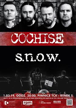 Tarnowskie Centrum Kultury zaprasza 1 marca o godzinie 20.00 na koncert zespołów Cochise i S.N.O.W. Bilety w przedsprzedaży kosztują 30 złotych, w dniu koncertu 35 złotych.