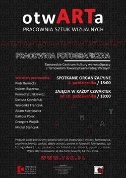 Spotkanie organizacyjne i zapisy dla osób zainteresowanych udziałem w warsztatach odbędą się 1 października o godzinie 18:00, w Pracowni Sztuk Wizualnych otwARTa Tarnowskiego Centrum Kultury.