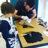 W czasie warsztatów dzieci razem z dorosłymi wykonają grafiki techniką tektorytu, w której matrycę stanowi tektura cięta na wzór. Jest to technika którą można traktować jak druk wklęsły, jak i druk wypukły. Tektura która jest używana jako medium do tworzenia grafik jest materiałem delikatnym, dlatego też z jednej wykonanej matrycy wykonuje się niewiele odbitek. Grafiki wykonane w tej technice mają niezwykłą fakturę. Wszystkie grafiki wykonywane są ręcznie stąd też możliwość eksperymentowania.