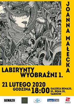 Fundacja Bema20 zaprasza na przechadzkę pośród niepowtarzalnych korytarzy wyobraźni Joanny Małeckiej. - Wystawa „Labirynty Wyobraźni 1. " to podsumowanie mojej małej przygody ze sztuką oraz tego, jak na przestrzeni kilku lat styl i forma moich prac się zmieniały... Plątanina kropek i kresek. Oczopląs towarzyszący poznawaniu moich prac sprawi, że na moment każdy będzie mógł przejść się labiryntami mojej wyobraźni. Niektóre z prac wypełnione są symbolami, trudnymi do zobaczenia na pierwszy rzut oka, inne maja mniejszą siłę wyrazu ,są bardziej zrównoważone i przemyślane. Wszystkim moim pracom poświęciłam wiele czasu, dopieszczając tuszem każdy, nawet najdrobniejszy szczegół – mówi o swoich pracach Joanna Małecka.
