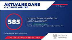 Aktualnie 1 osoba jest hospitalizowana, pozostałe przebywają w izolacji. Tym samym w Małopolsce zakażenie koronawirusem zostało potwierdzone u 585 osób.