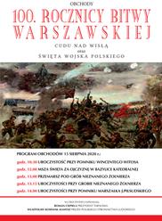 W tym roku przypada okrągła, setna rocznica Bitwy Warszawskiej. Obchody tego wydarzenia odbędą się tradycyjnie 15 sierpnia, a w Tarnowie zapraszają na nie: prezydent Roman Ciepiela oraz prezes Polskiego Stronnictwa Ludowego, Władysław Kosiniak-Kamysz. Tarnowskie obchody Cudu nad Wisłą rozpoczną się o godzinie 10.30 pod pomnikiem Wincentego Witosa. W południe w Bazylice Katedralnej odprawiona zostanie msza święta za ojczyznę, po której nastąpi przemarsz pod Grób Nieznanego Żołnierza. Około godziny 13.15 odbędzie się tam dalsza część uroczystości, m.in. złożenie wieńców. Tarnowskie obchody setnej rocznicy Bitwy Warszawskiej zakończą uroczystości przy pomniku marszałka Józefa Piłsudskiego. Ich początek zaplanowano na godz. 14.00.
