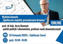 "Społeczne aspekty prowadzenia biznesu" to tytuł wykładu, który 24 listopada wygłosi prof. dr hab. Jerzy Hausner. Wykład odbędzie się online, zapisy do udziału przyjmuje Urząd Miasta Tarnowa.