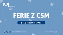 Ferie w Centrum Sztuki Mościce jednak się nie odbędą. Zaplanowane warsztaty "Inne niż dotąd" oraz "Historia Polski w legendach i postaciach zapisana" dla dzieci klas I-III i IV-VIII zostały, za rekomendacją sanepidu, odwołane. Tym samym wszystkie możliwe wydarzenia w CSM także nie dojdą do skutku. CSM zaprasza jednak na zajęcia w formie online – warsztaty i spektakle familijne. Wszyscy chętni powinni śledzić media społecznościowe i profile CSM.