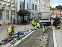 Na ulicy Wałowej w Tarnowie trwa budowa tzw. klombików. Cztery małe zieleńce uzupełnią parklety, które wkrótce mają powstać po przeciwnej stronie. Na Wałowej ma się zrobić zielono.