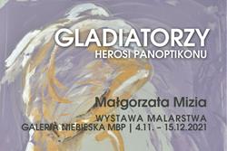 W Galerii Niebieskiej Miejskiej Biblioteki Publicznej w Tarnowie od czwartku, 4 listopada, można oglądać wystawę „Gladiatorzy. Herosi Panoptikonu”, której autorką jest Małgorzata Mizia. Na wystawie znalazło się 19 prac artystki w dużym formacie. To nie pierwsza wystawa prac Małgorzaty Mizi w Tarnowie. Pierwsza wystawa w Galerii Niebieskiej miała miejsce w 2010 r. i rozpoczynała cykl imprez w MBP z okazji „Roku Tarnowa” – 680. rocznicy lokacji miasta. Wystawa nosiła tytuł "Wyżej dachów. Tarnów i okolice". Kolejną wystawę w galerii przy ul. Krakowskiej, zatytułowaną „Panoptikon polski", Małgorzata Mizia pokazała w 2019 r. Artystka jest związana ze środowiskiem tarnowskich malarzy, m.in. Krystyną Baniowską-Stąsiek czy Eugeniuszem Molskim.