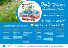 Do wiosennego przeglądu zdrowia zaprasza Mościckie Centrum Medyczne. Podczas Białego Tygodnia czyli profilaktycznej akcji badań, będzie można skorzystać z badań i konsultacji lekarskich, a w razie wykrycia choroby, szybko rozpocząć leczenie. Akcja, skierowana do mieszkańców Mościc, rusza 30 maja, już można się rejestrować.