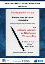 W środę, 8 listopada, w Bibliotece Pedagogicznej w Tarnowie odbędzie się promocja zbioru wierszy „Bez miliona na siebie pomysłów”. Wydarzeniu towarzyszyć będzie spotkanie autorskie ze Zbigniewem Mirosławskim.