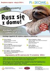 W poniedziałki oraz piątki, od godziny 18.00 do 20.00 odbywać się będzie nordic walking (należy mieć własne kijki). We wtorki o godzinie 17.00 można wziąć udział w zajęciach zdrowy kręgosłup – grupa początkująca. Godzinę później rozpocznie ćwiczenia wzmacniające grupa zaawansowana. Uczestnicy proszeni są o zabranie ze sobą mat. Z kolei w środy o godzinie 17.00 odbywać się będzie slow jogging, a o godzinie 18.00 interwały dla zaawansowanych. W czwartki o godzinie 17.00 ponownie odbywać się będą zajęcia zdrowy kręgosłup (początkująca grupa), a o godzinie 18.00 ćwiczenia pilates.