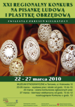150 osób zgłosiło swój udział w XXI Regionalnym Konkursie na Pisankę Ludową i Plastykę Obrzędową związaną z okresem Wielkanocy. Organizatorem konkursu jest Małopolskie Centrum Kultury SOKÓŁ w Nowym Sączu – Biuro Organizacyjne w Tarnowie, współorganizatorem i gospodarzem jest Muzeum Etnograficzne w Tarnowie, a patronat honorowy nad konkursem objął