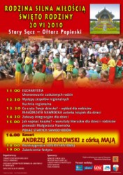 20 czerwca w Starym Sączu odbędą się uroczystości Diecezjalnego Święta Rodziny i pielgrzymka rodzin. Jednym z punktów programu będzie festyn organizowany przez Stowarzyszenie Rodzin Katolickich Diecezji Tarnowskiej pod hasłem „Rodzina silna Miłością – Święto Rodziny”. Festyn będzie miał również wymiar charytatywny – z myślą o poszkodowanych przez powódź i osuwiska.